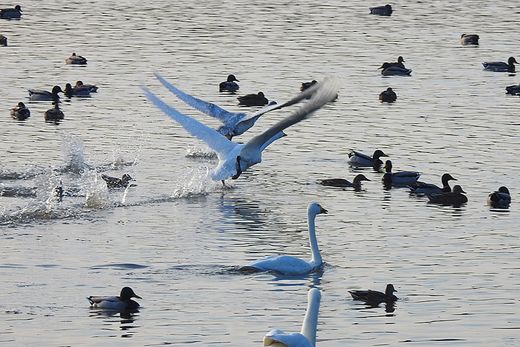を共にしており、運が良ければ飛び立ちを撮れそうです。しかしタイミングが不明の上、数千羽のカモ類や600羽