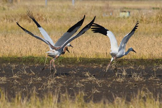 今日のソデグロヅルは、最初にに飛来した場所から20kmほど離れた所で確認されました。元の場所での噂では、