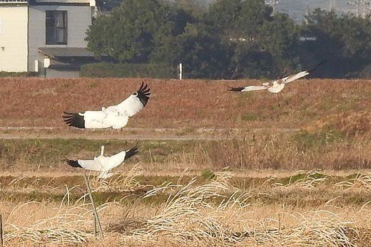 ソデグロヅルのファミリーが11日と同じ場所に戻った処を訪ねました。依然と比べ警戒心が強くなっているようで