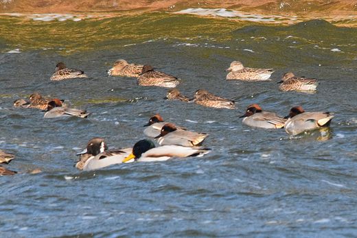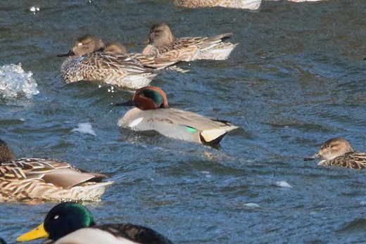 ていました。そんな中でアメリカコガモ雄2羽を見ることが出来ましたが、遠い上に風・波共に強く証拠写真を撮る
