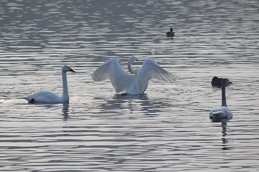県民の森の探鳥会当日、実施直前の白鳥の郷を覗いてみました。8時を過ぎハクチョウたちは餌場の田圃へと飛び