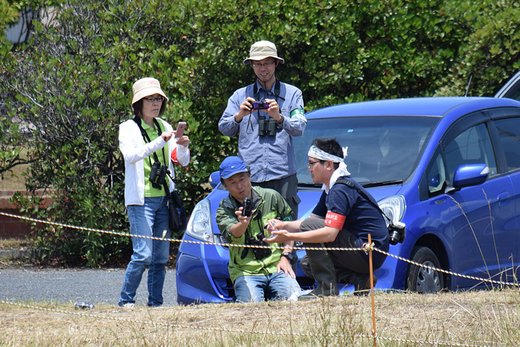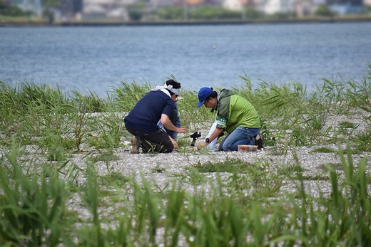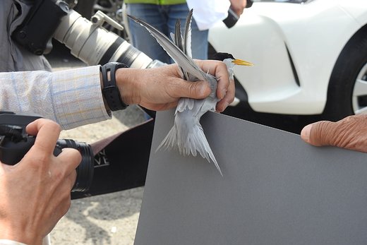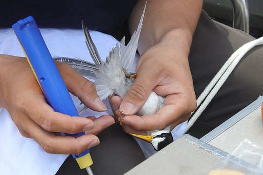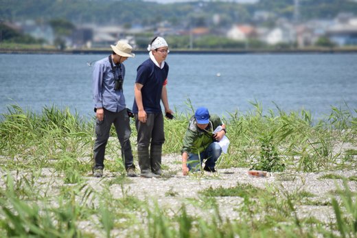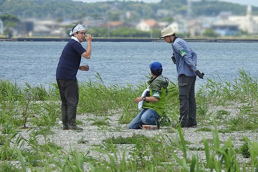 コアジサシ♀のペアが抱卵を始め、山階鳥類研究所の茂田先生のグループによるバンディング調査がこの日に実施