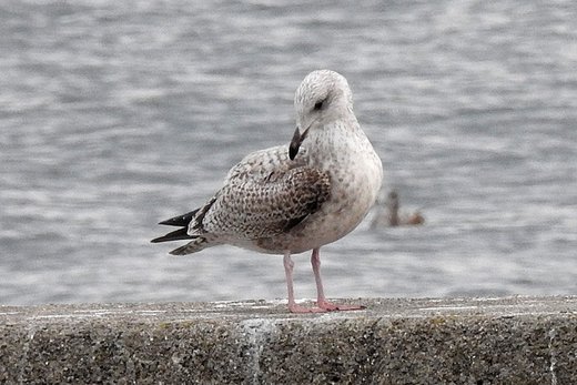 ガン・カモ類の調査後、MFの海辺の水鳥を巡ってみました。ウミアイサを始めとする水鳥が非常に少なくて、カモ メのポイントへと移動します。多くのウミネコに混じって數種類のカモメが見られました。中には同定に迷う個体も あり、鳥名に誤りがあると思います。ご教示頂ければ幸いです。