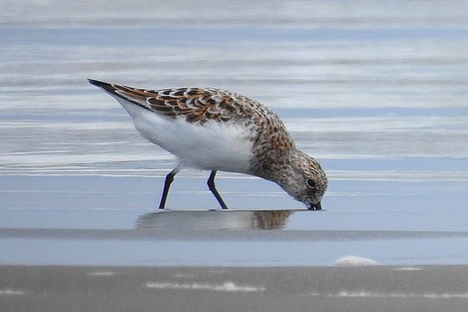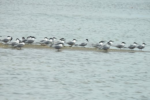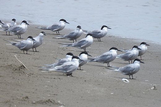 九十九里浜全体の感じではコアジサシの数が少ないように思われます。そのような中で、片貝漁港の砂浜では多くの アジサシやシギ・チドリ類を観察することが出来ました。
