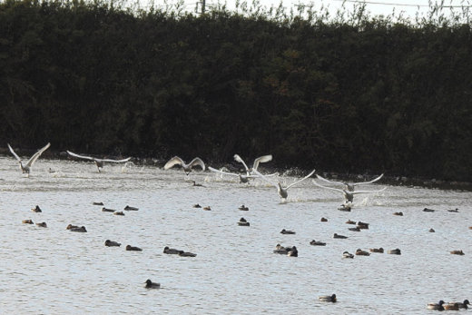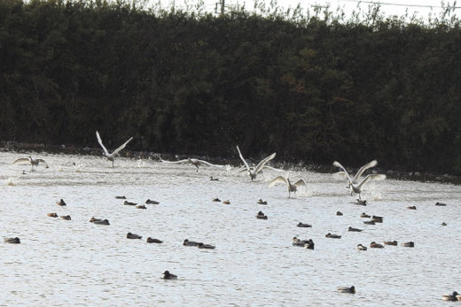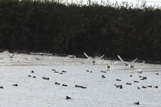 朝からコハクチョウの塒となっている堰を訪ねました。