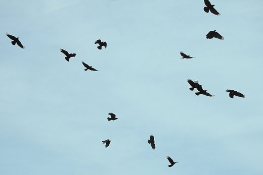 10日は猛禽エリア、24日は所要の帰り、偶然にミヤマガラスの群れに出逢いました。