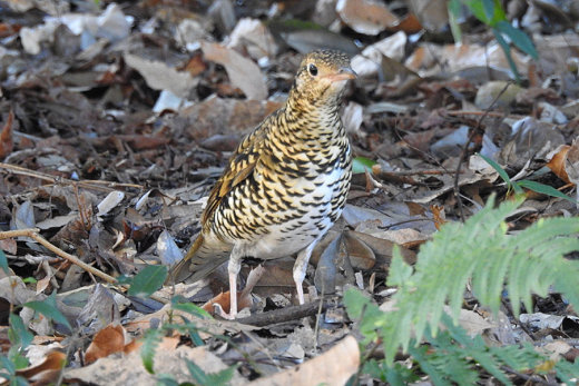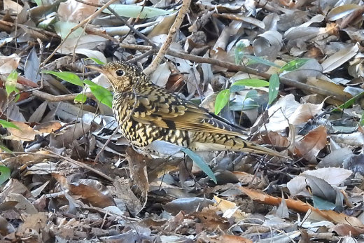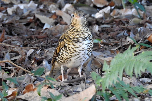 池では前回見られたトモエガモやミコアイサが見られません。落胆気味で池を巡ることにしましたが、浮橋を渡った 所でカメラを構えている人に出会い、トラツグミの位置を教わりました。これが今回のせめてもの収穫です。