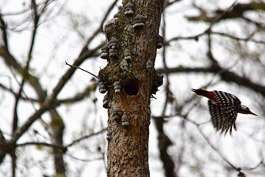方の誘導により、メンバーの多くがオオアカゲラの育雛(雛は見えず。)での餌運びを楽しむことが出来ました。