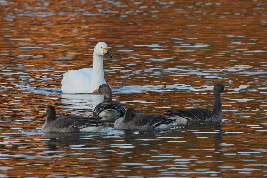 コハクチョウとアメリカコハクチョウ (2012/01/14)