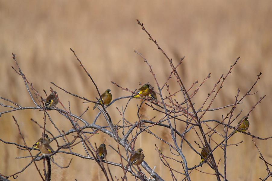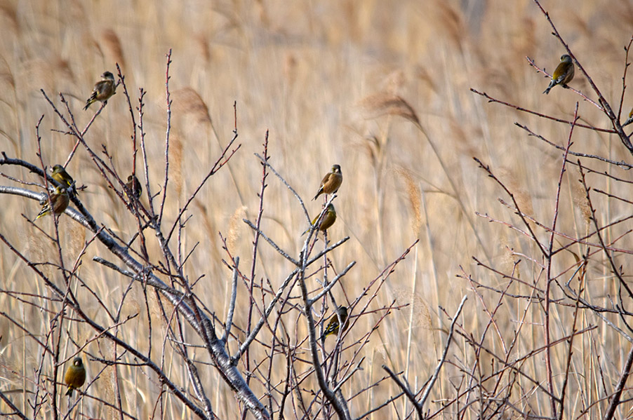 ラヒワがある。また小笠原諸島と硫黄列島には別の亜種が繁殖している。秋冬には川原、農耕地に群れを作ってすみ、黄色い翼を見せ