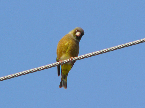 は黄緑色味が強く、目先から嘴の基部は黒っぽい。幼鳥は全体に色が淡く、下面には暗色の縦斑があり、翼の黄色部は白っぽい。