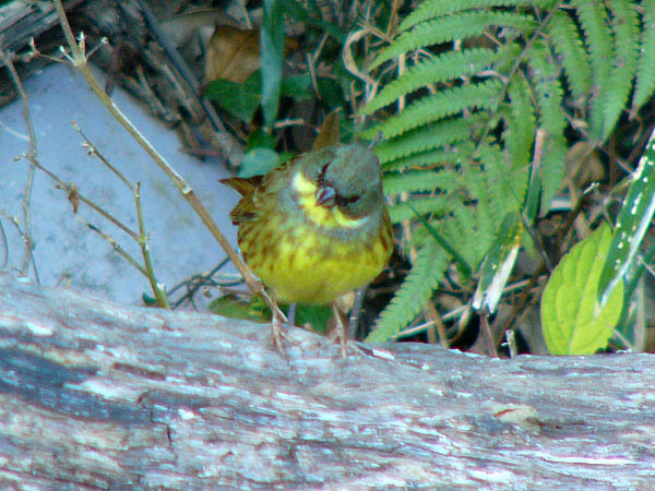 類 似 種:ノジコは下面が硫黄色で、目の周囲が細く白く、下面の縦斑が殆どない。雌にも明瞭な眉斑と顎線はない。