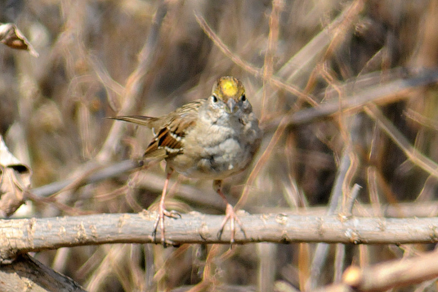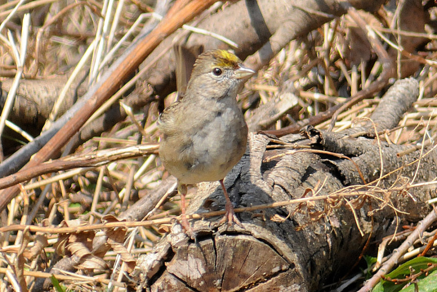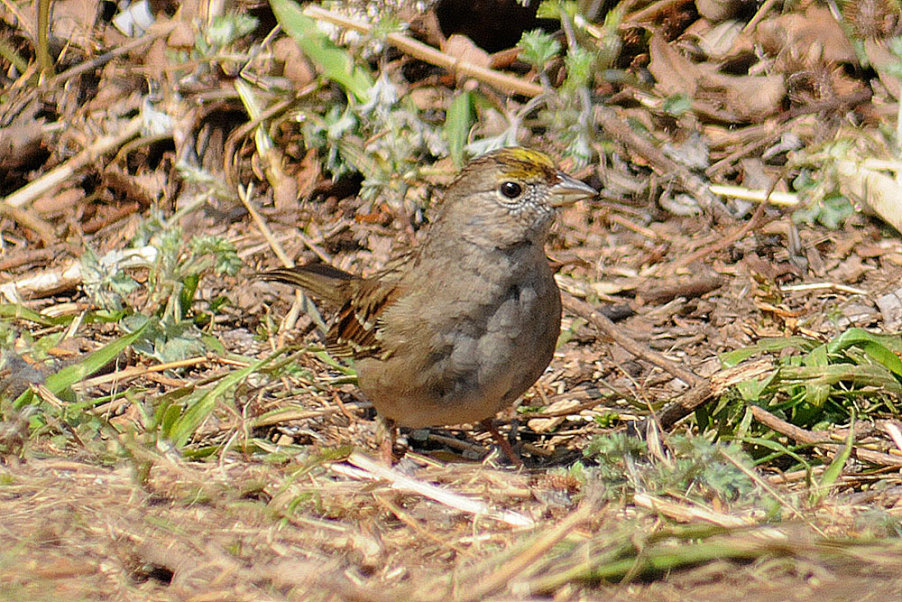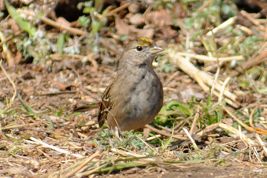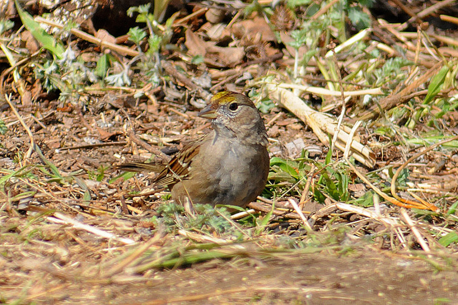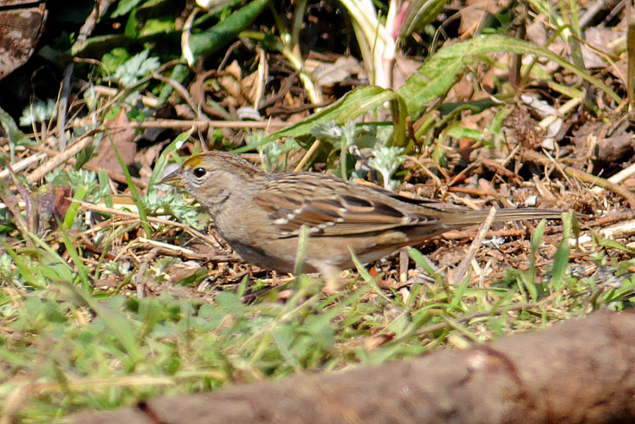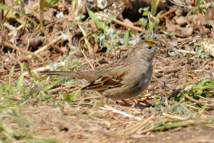 特 徴 :L16cm 額から頭側線、後頭と続いて黒く、頭上は黄色。背は赤褐色で黒い縦線があり、翼は黒褐色で赤褐色の羽縁があり、と中
