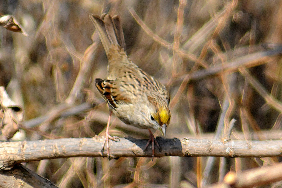 習 性 :迷鳥として1935年12月に東京都荒川下流で、2011年2月に千葉県江戸川での記録がある。低木林や林縁にすみ、冬にはミ