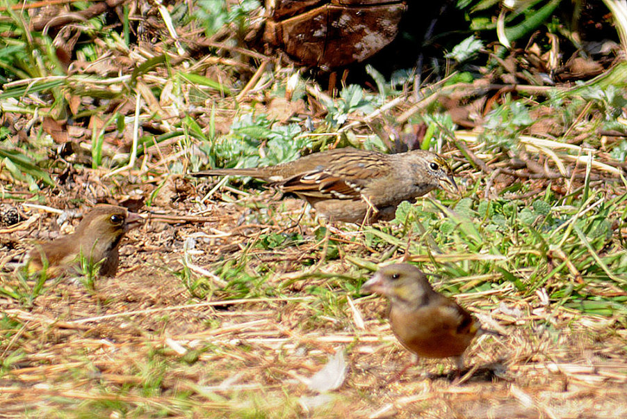 類 似 種:ミヤマシトドの夏羽は頭央線、眉斑が白色。頭側線、過眼線は黒色。嘴は橙褐色。