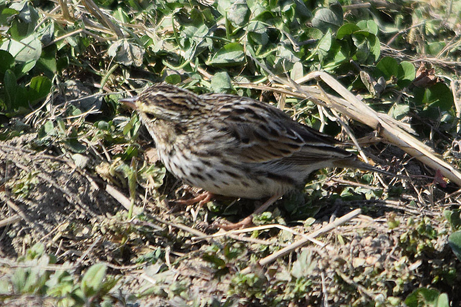 類 似 種:ツメナガホオジロの雌は大きくて後頸と大雨覆が赤褐色で目立ち、足は黒い。クロジの雌は大きくて全体に茶色味が強く、腰は赤