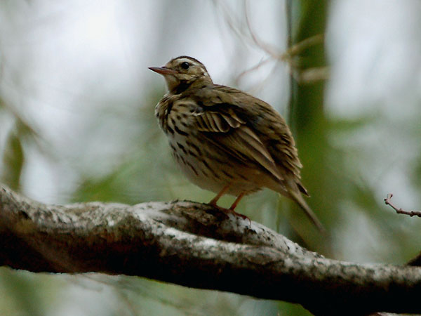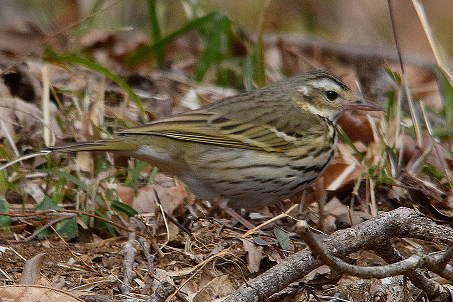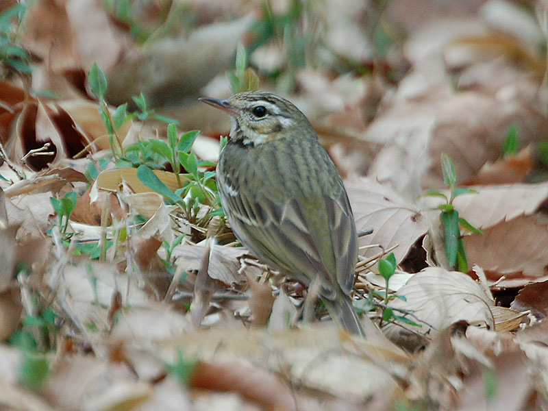特 徴 :L15.5cm 頭上から体の上部まではオリーブ緑色で、黒褐色の不明瞭な縦斑があり、尾は黒褐色で外側尾羽の外弁は灰白色。眉斑