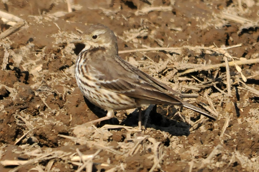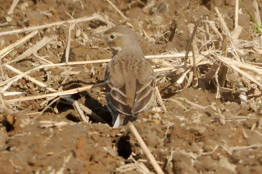類 似 種:ムネアカタヒバリハは背の黒線が明瞭で淡色の線があり、耳羽には赤褐色味がある。
