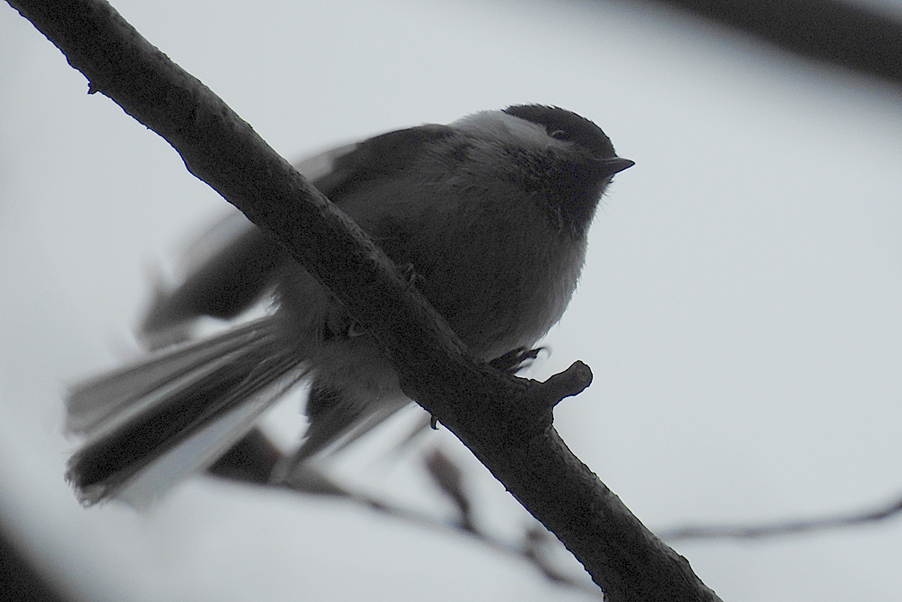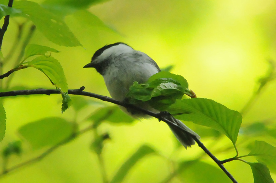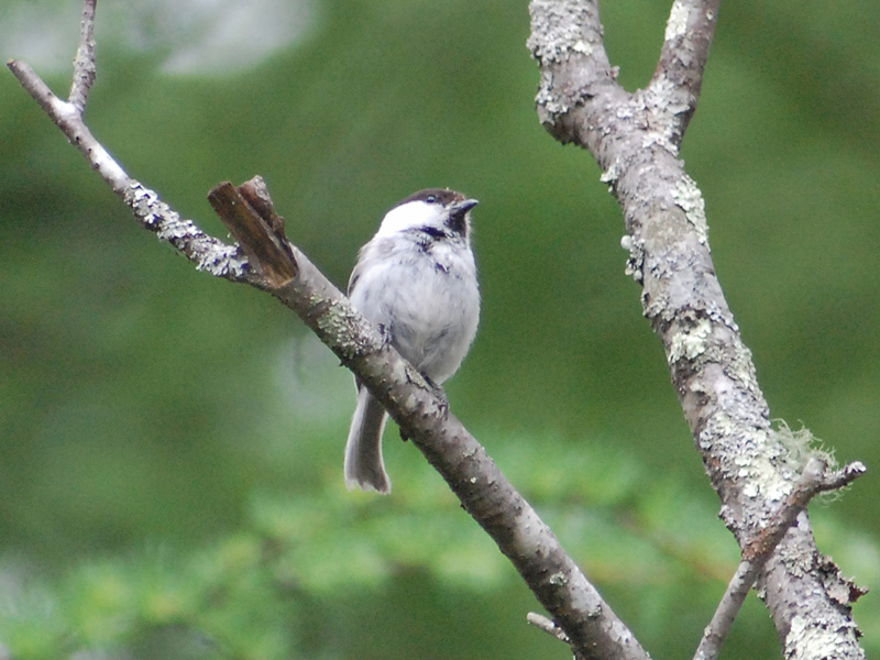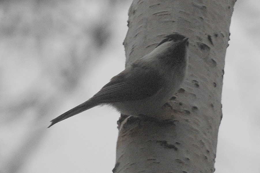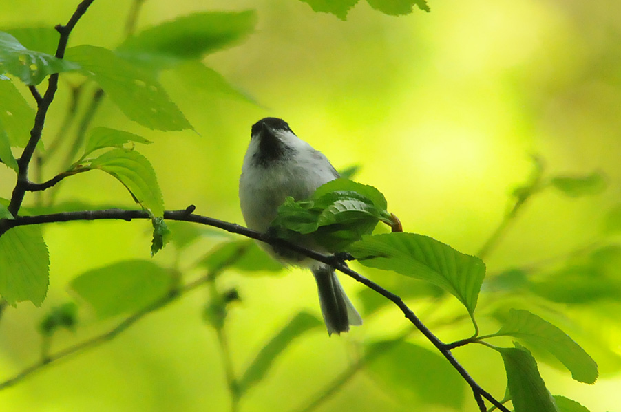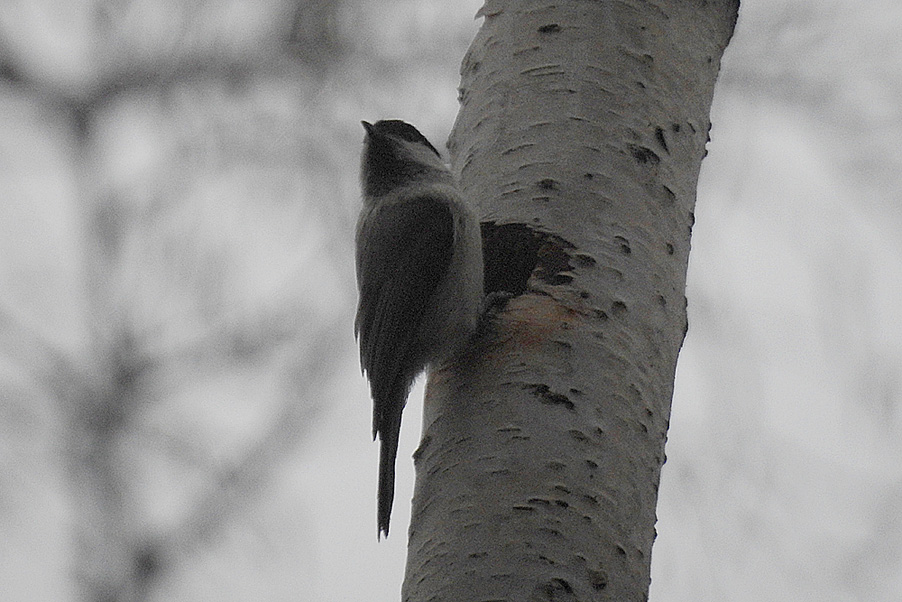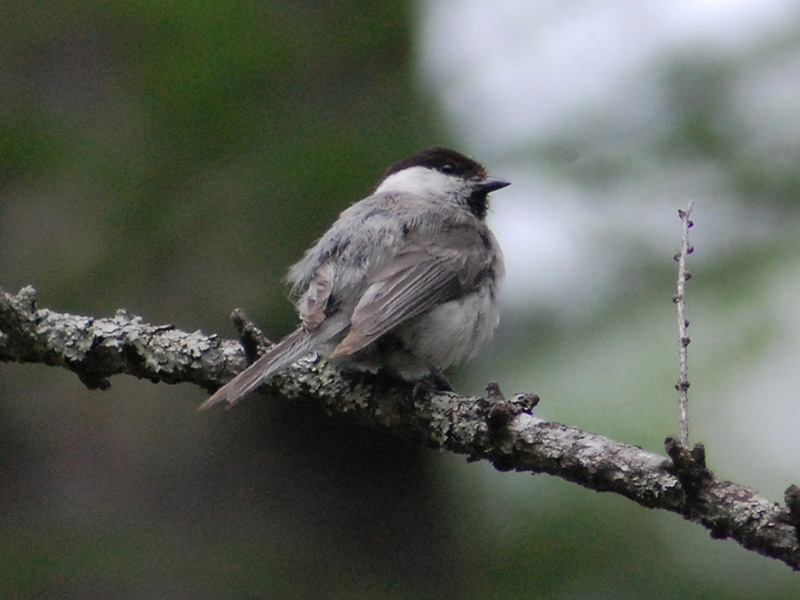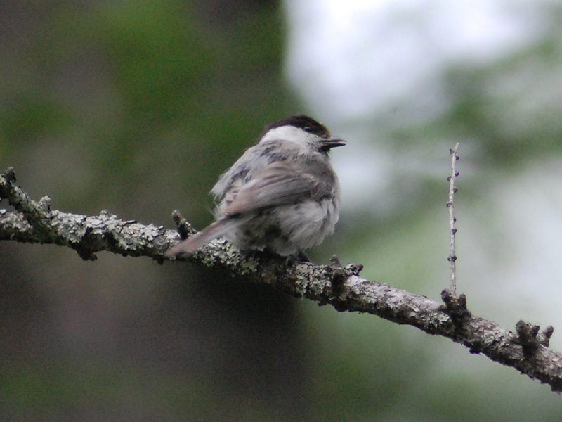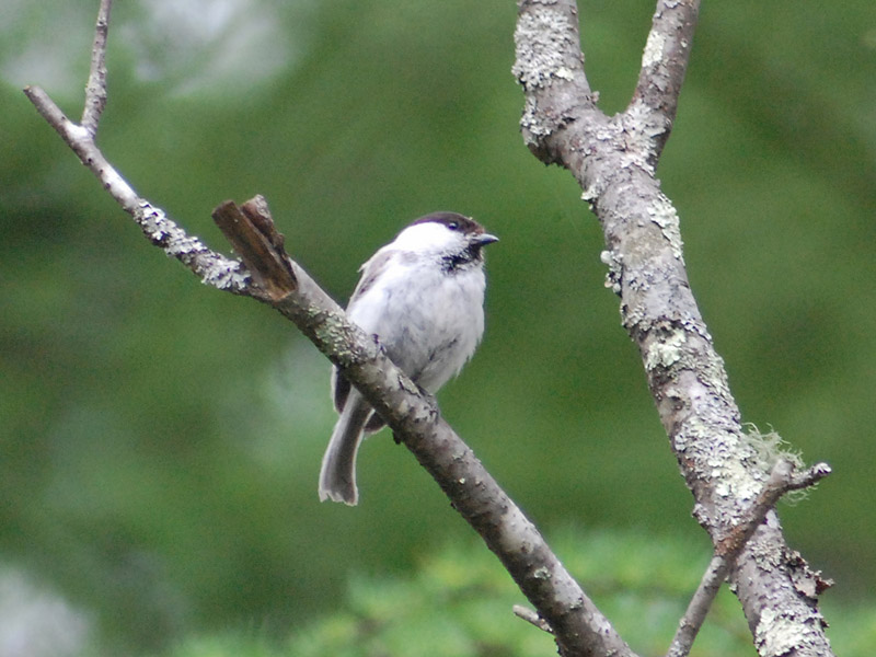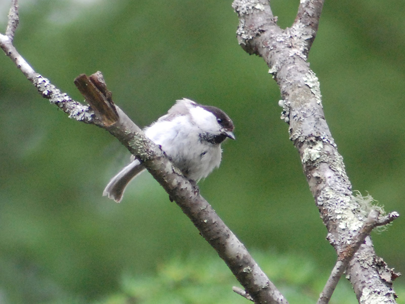 特 徴 :L12.5cm ハシブトガラによく似ているが嘴は少し細く、頭上の黒色部は光沢が無くて少し褐色を帯び、淡色の地列風切外縁が翼