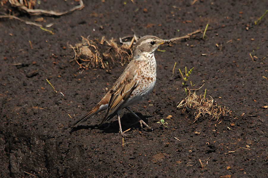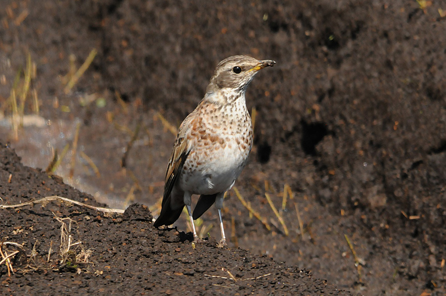 特 徴 :L24cm 日本には少数が渡来するツグミの別亜種だが、独立種とする考え方もある。ムクドリと同大。頭上から体の上面が灰黒褐色