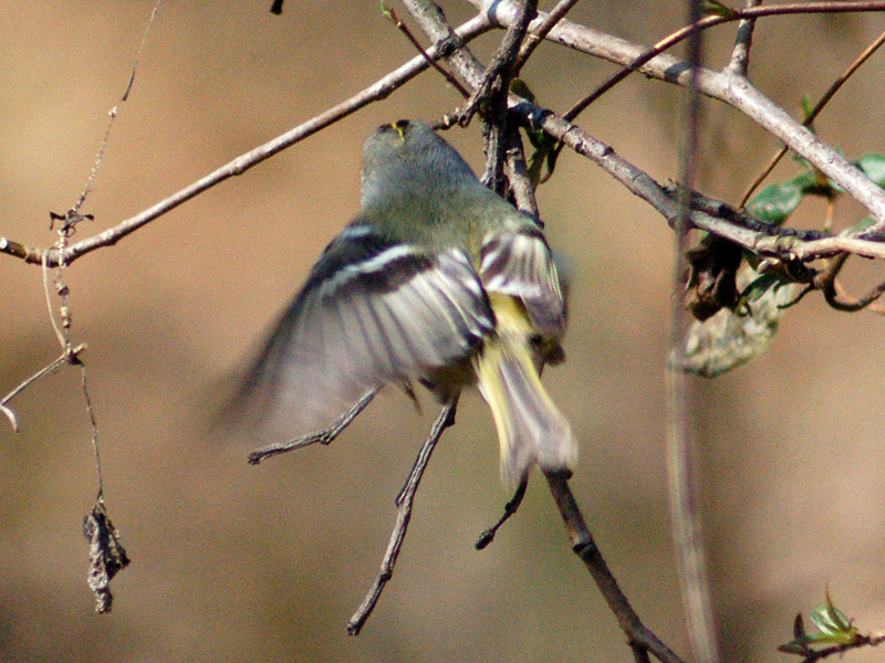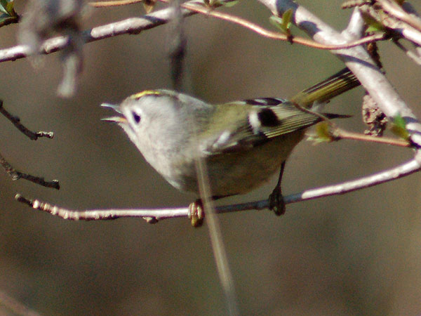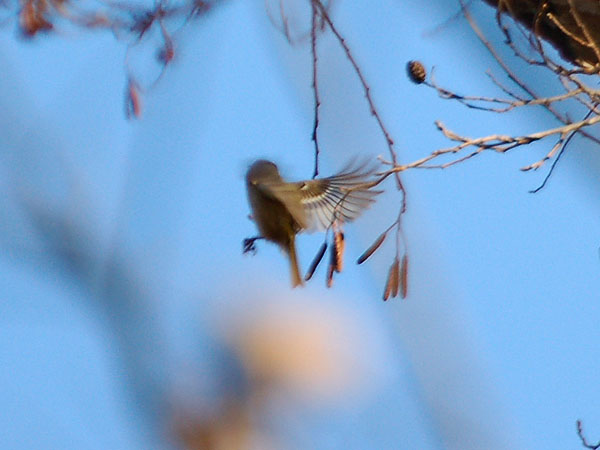 特 徴 :L10cm 日本で最少の鳥。体はオリーブ緑色で、翼の白い羽縁、目の周囲の白色が目だつが、頭上の黄色は野外では見にくい。