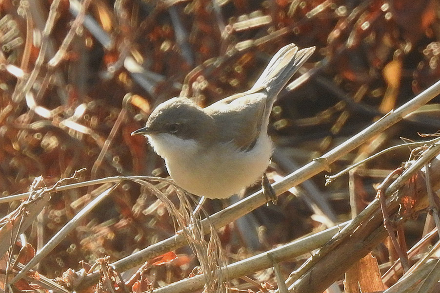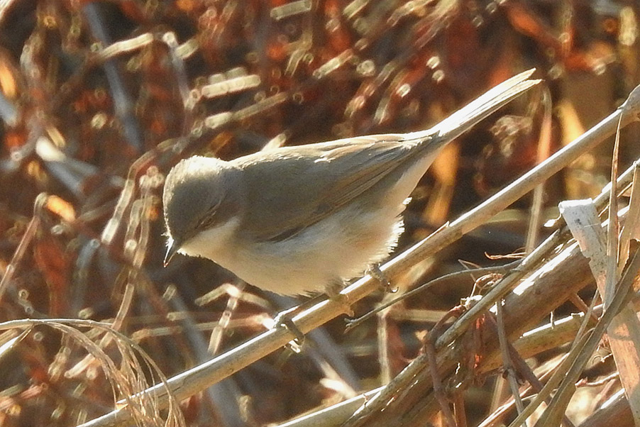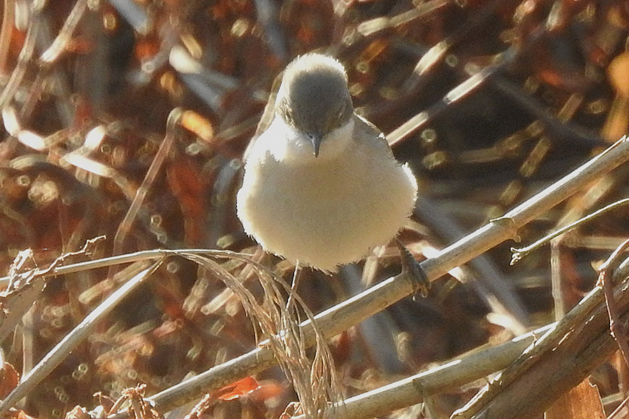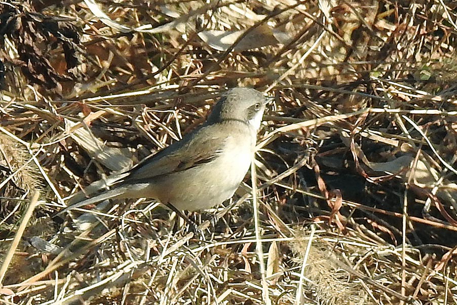習 性 :スズメより小さい。雌雄同色。頭頂と側頭は青灰色で、目先と耳羽が黒褐色。上面は灰褐色。体下面は白く、胸から脇は褐色味を帯び