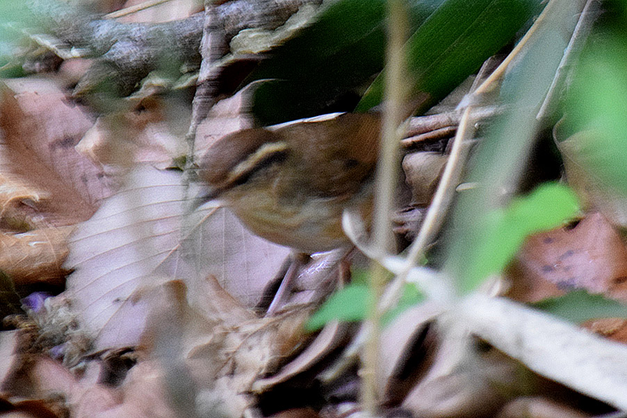 特 徴 :L10.5cm 小さくて尾は短い。体は茶褐色で下面が淡く、眉班は白くて明瞭。