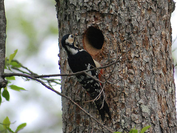 類 似 種:オオアカゲラは少し大きくて嘴は比較的長く、背には特に目立つ逆八の字の白斑はない。脇には黒い縦斑があり、雄では頭上全部が