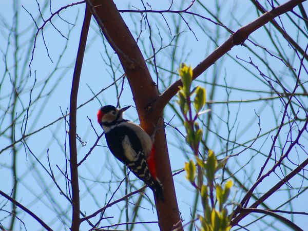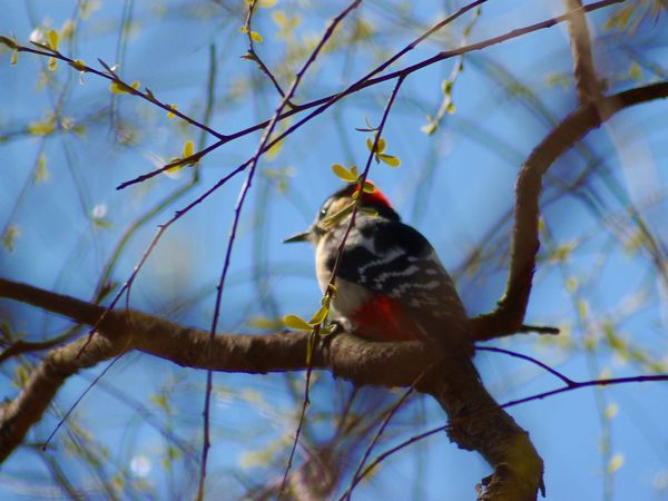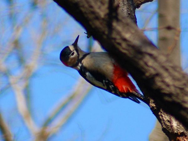 赤い。四国、九州にも分布している。子アカゲラはずっと小さくて嘴は更に短い。背には逆八の字の白斑はなく、白色横斑が連なっ