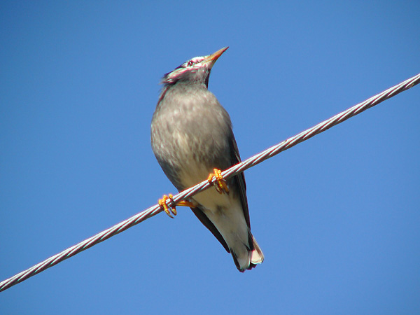 も食べる。夏から春には群れを作り、電線、大木、鉄塔等に並んでとまる。塒では何万羽という大群になる。