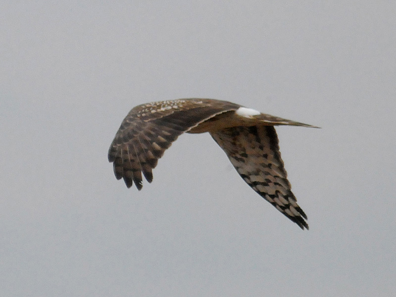 類 似 種:チュウヒの雄は頭部や背に褐色や黒色の斑がある。雌や若鳥は褐色味が強くて、翼の下面に横斑はない。マダラチュウジの雄は頭部