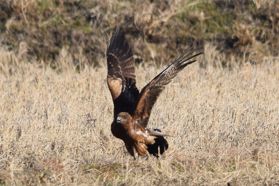 類 似 種:ノスリは小さくて翼の幅は広く、尾は短くて円尾。飛翔中、翼の下面は淡褐色で翼角に黒斑がある。チュウヒは帆翔時の両翼がV字