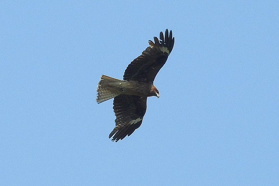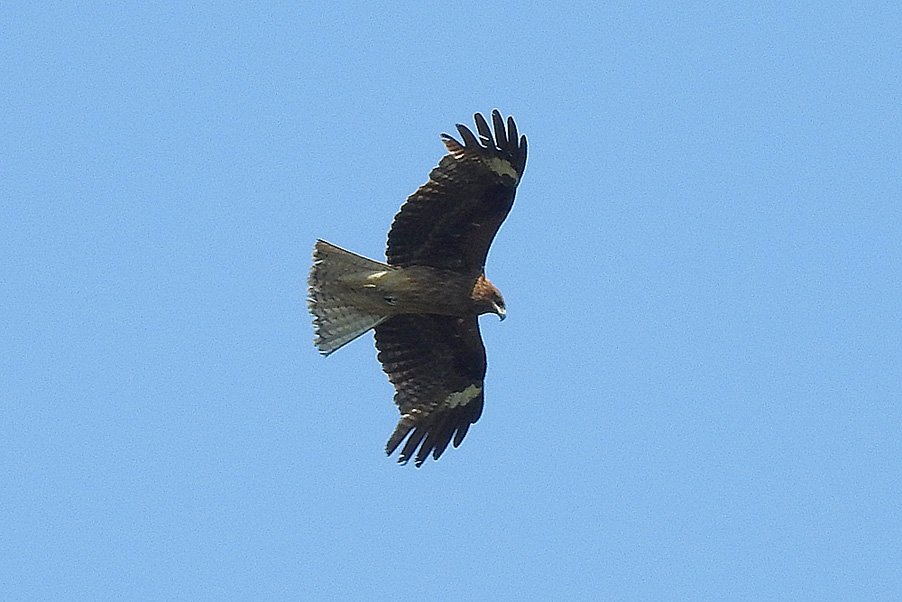 はトビだけであるが、広げると三角形、極度に広げると中央部が突出して円尾に近くなる。体は黒褐色で淡色の羽縁があり、特に若