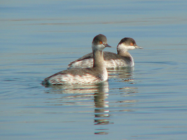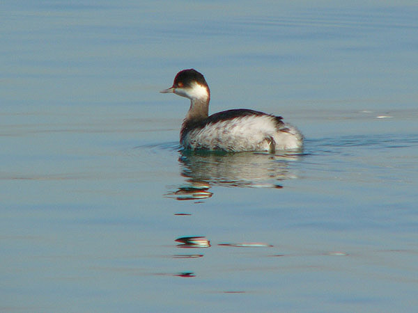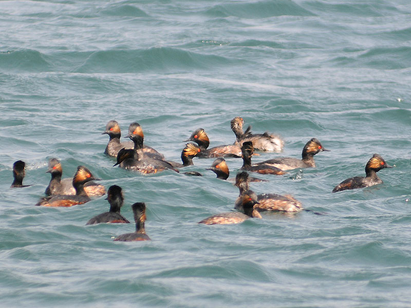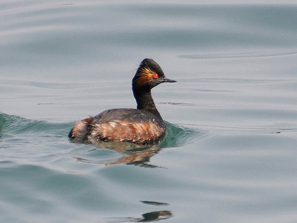 特 徴 :L31cm 雌雄同色。夏羽では顔からくびが黒くて、顔に金栗色の飾り羽がある。冬羽では顔からくびが淡褐色で、目の後ろに特に