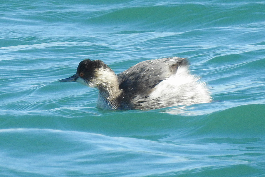 類 似 種:ミミカイツブリの嘴はまっすぐで先端が淡色。頭頂はよりなだらか。