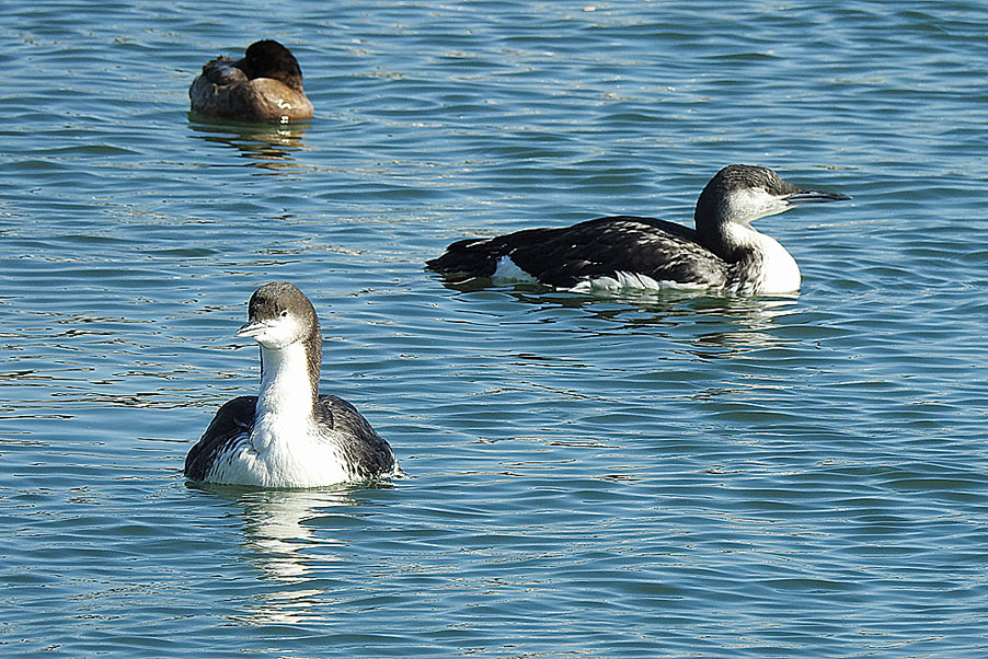 シロエリオオハム(左)とオオハム(右) 2017/01/13 MFにて