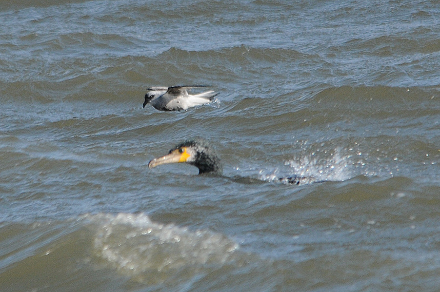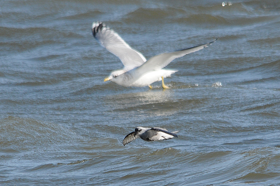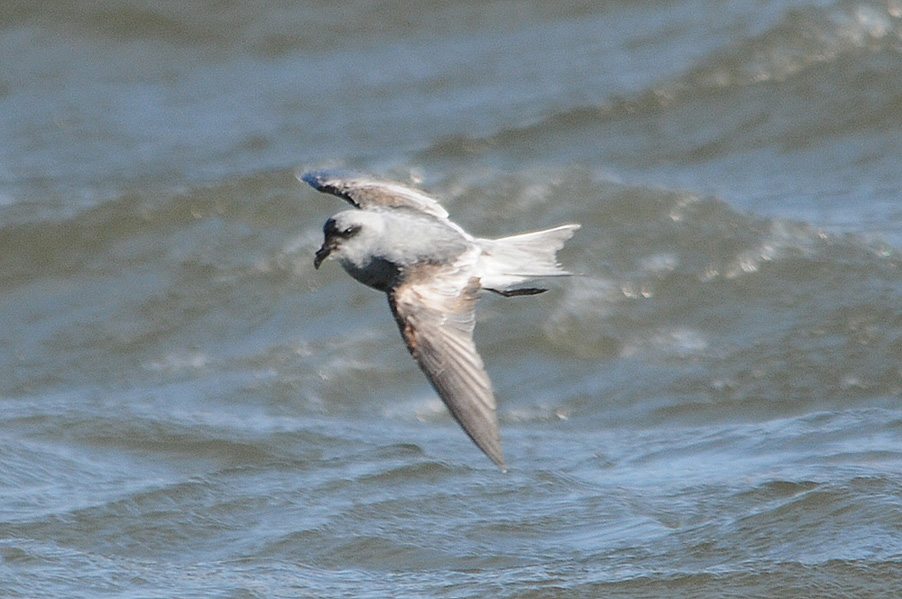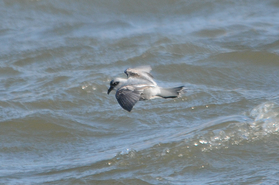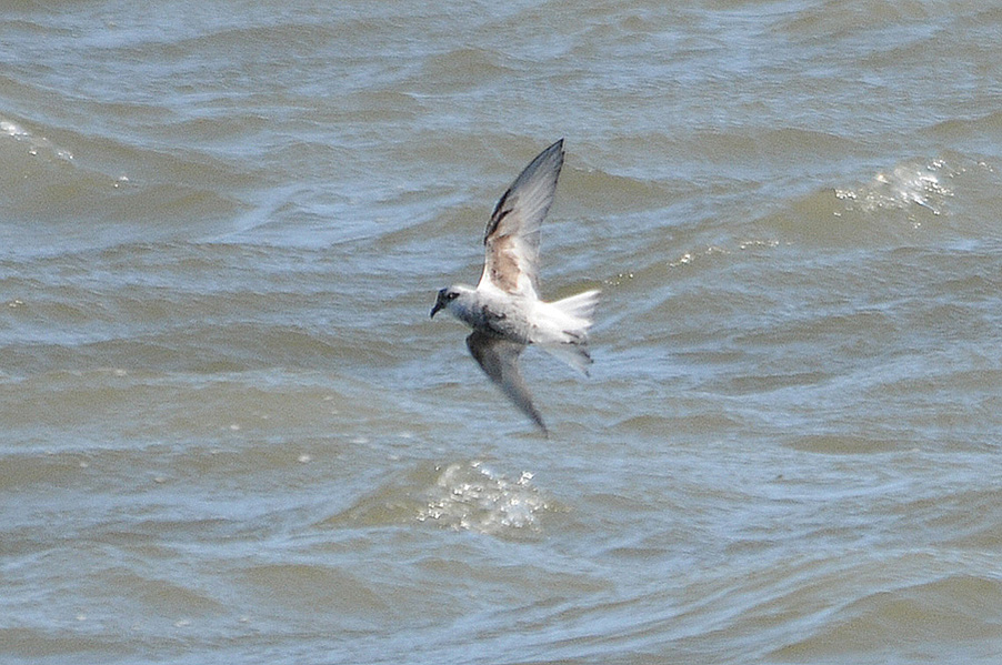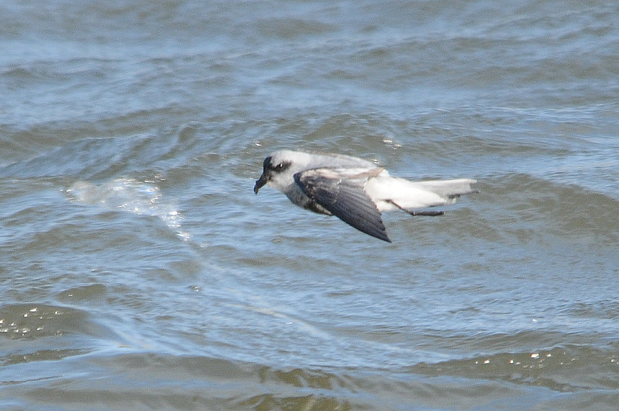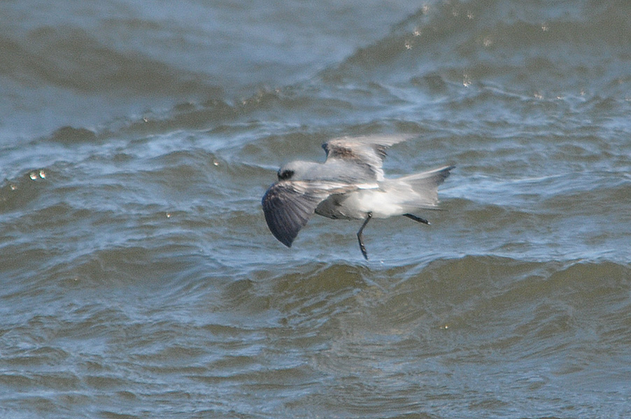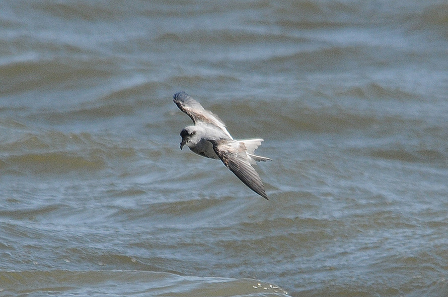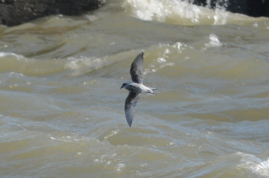 台風の余波で海が大荒れの際、漁港に1羽のハイイロウミツバメが入りました。先月の個体と異なり非 常に元気で飛び回っていることもあり、被写体として捉えるのは厳しい状況でした。