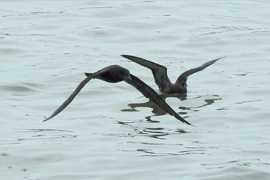 類 似 種:ハイイロミズナギドリは大きくて、翼の下面が銀色に光る。アカアシミズナギドリはハイイロミズナギドリより更に大きくて、嘴と