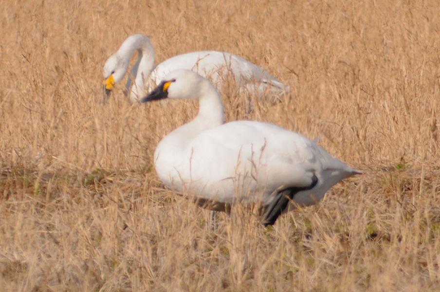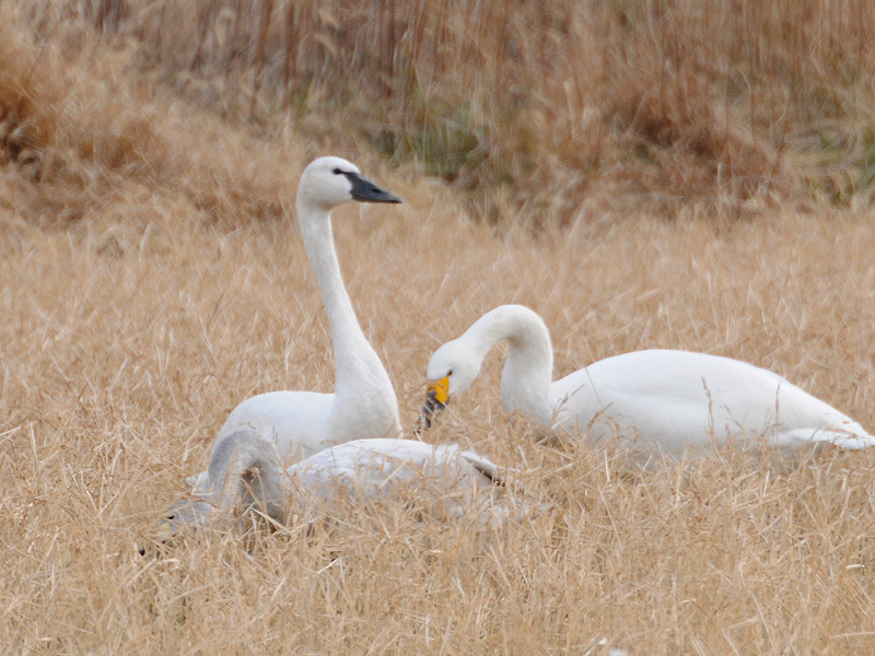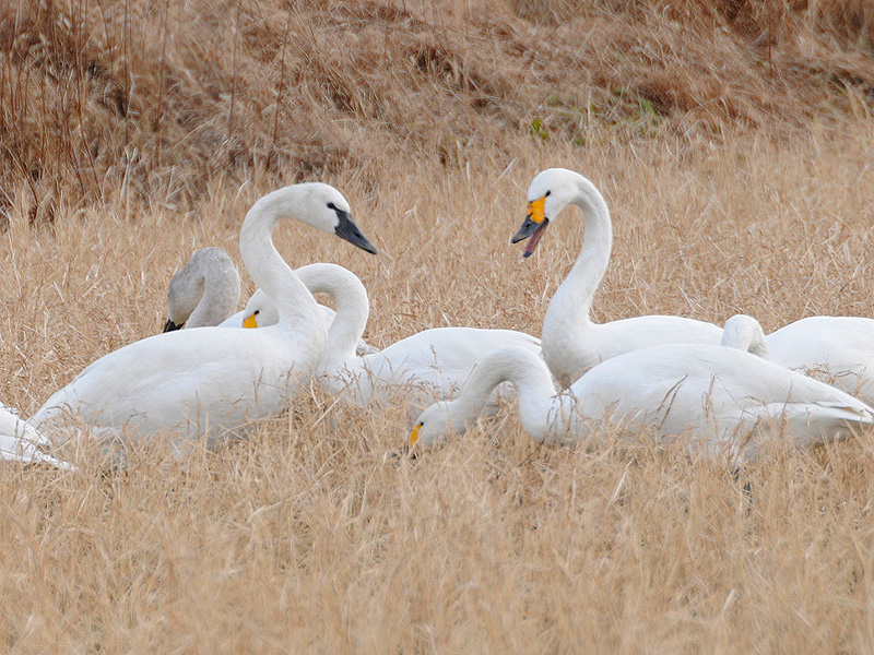 特 徴 :L120cm コハクチョウの亜種でコハクチョウよりやや大きい。嘴の大部分が黒く、目先に僅かな黄色部がある。中には2010