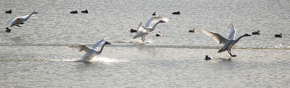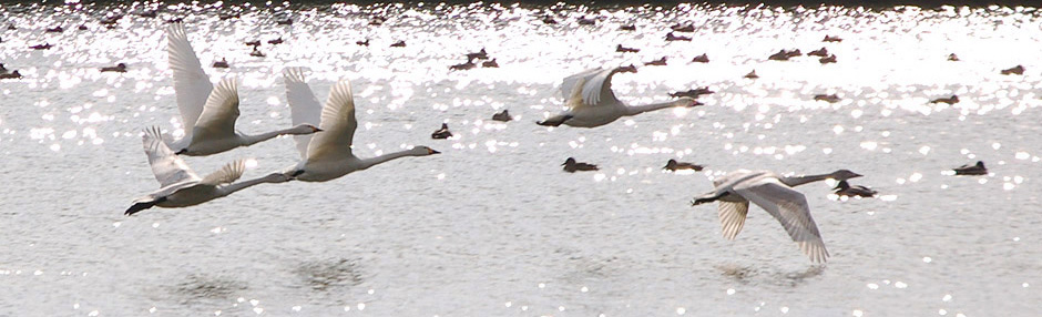 習 性 :冬鳥として湖沼、河口、内湾、広い川等に渡来するが、猪苗代湖、中海に多い。また、少数だがオオハクチョウよりも日本西南部に