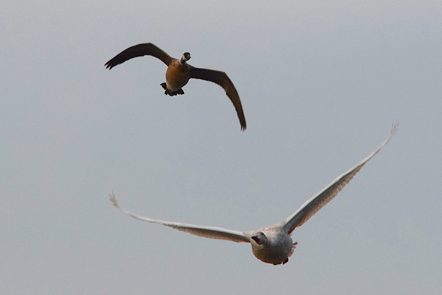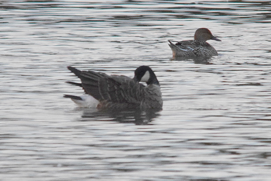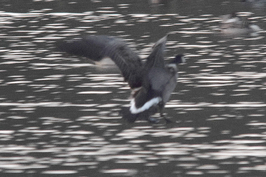 類 似 種:マガン、ヒシクイ等の灰褐色のガンは頭からくびが黒ではなく灰褐色、嘴や足も黒ではなく桃橙色である。コクガンは体は黒いが小