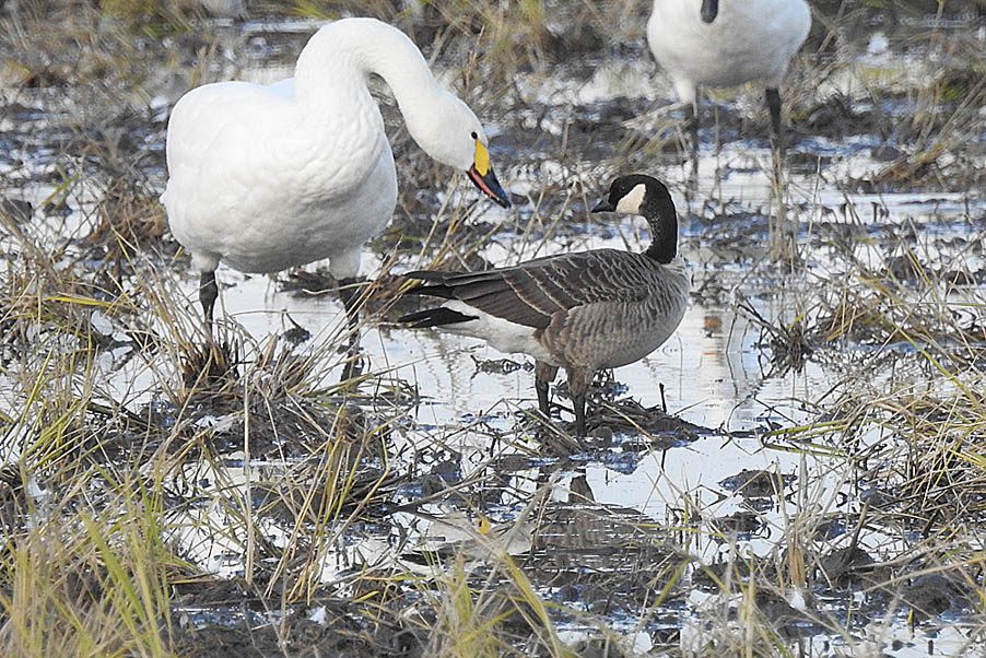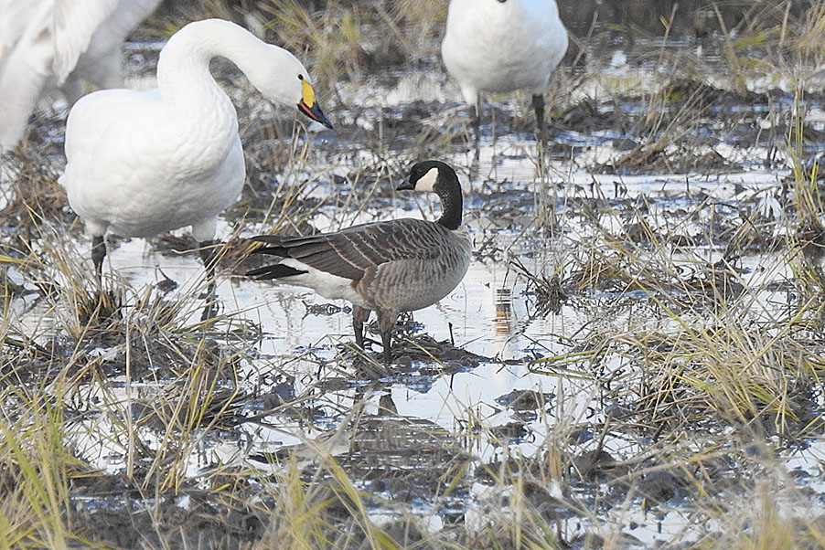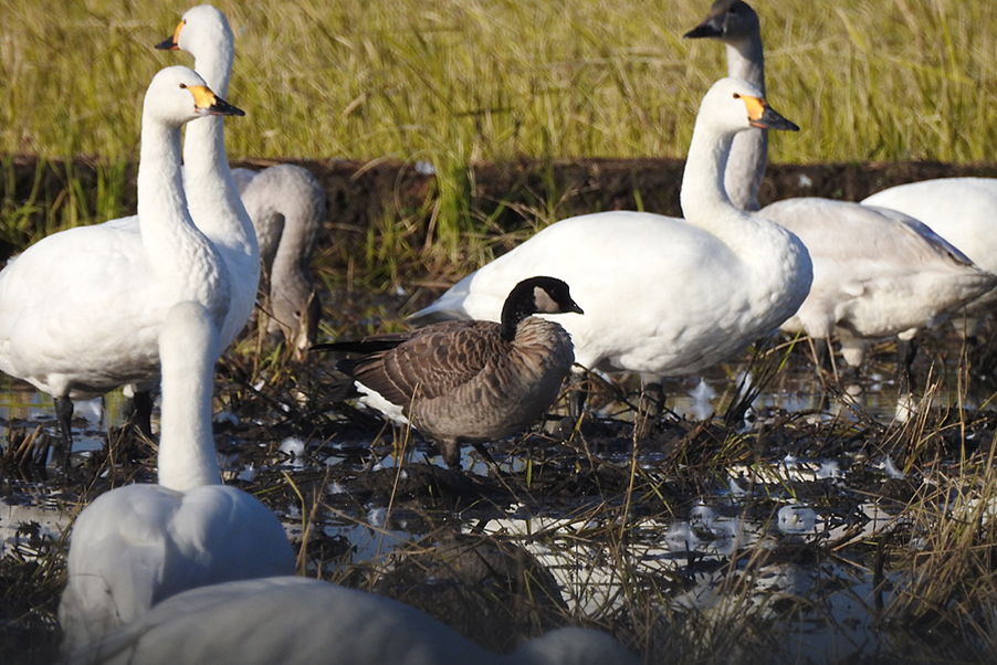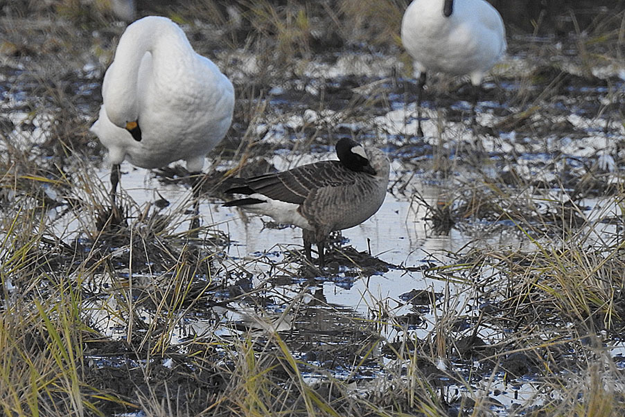 習 性 :数少ない冬鳥として渡来し、マガンの群中に1羽から数羽がいることがあるが、渡来地は限られている。