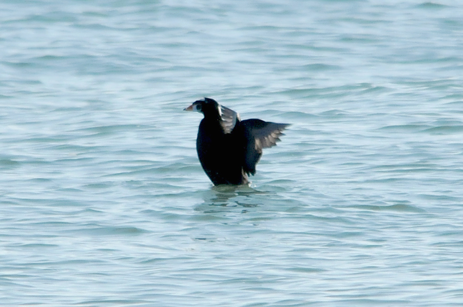 類 似 種:ビロードキンクロは地列風切が白くて、雄の目の下には三日月形の白斑があり、雌の顔には目の前後に1個づつの淡色斑があるが、