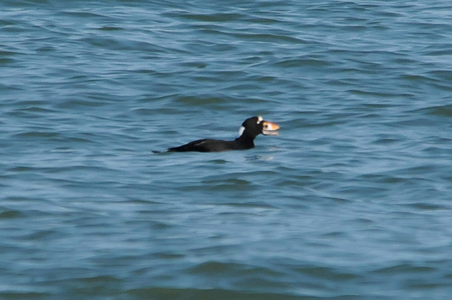 特 徴 :L56cm 形、色彩、習性はビロードキンクロとよく似ている。雄の体は黒いが、嘴の基部は厚くなり、黒、白、橙色の特徴ある斑