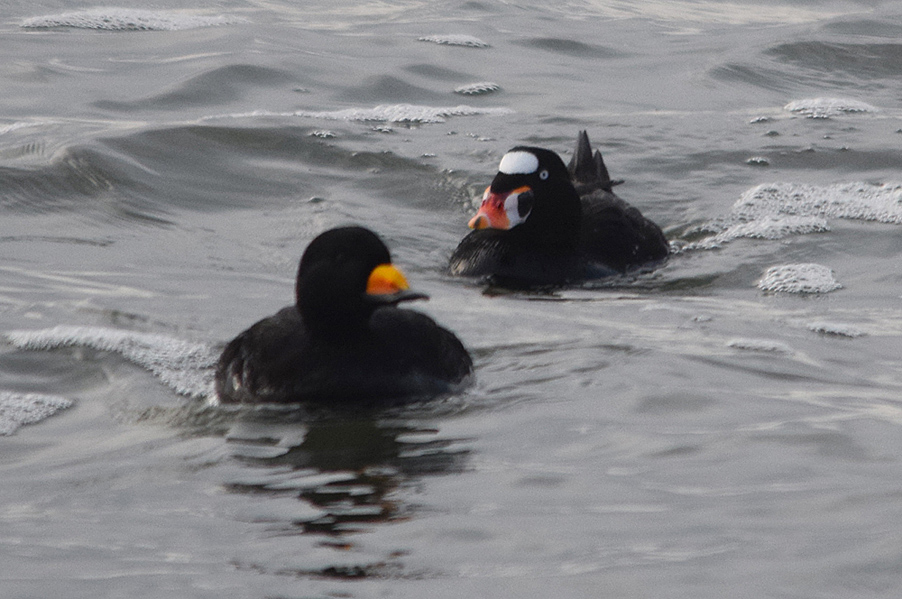 今年もアラナミキンクロが入ったとの情報があり、昨年のリベンジで九十九里浜を訪ねました。波が高いのと逆光で思っ たようには撮れませんでしたが、昨年の証拠写真と比べれば格段の違いで鳥の特徴がよく判ります。
