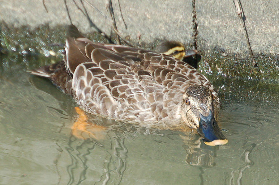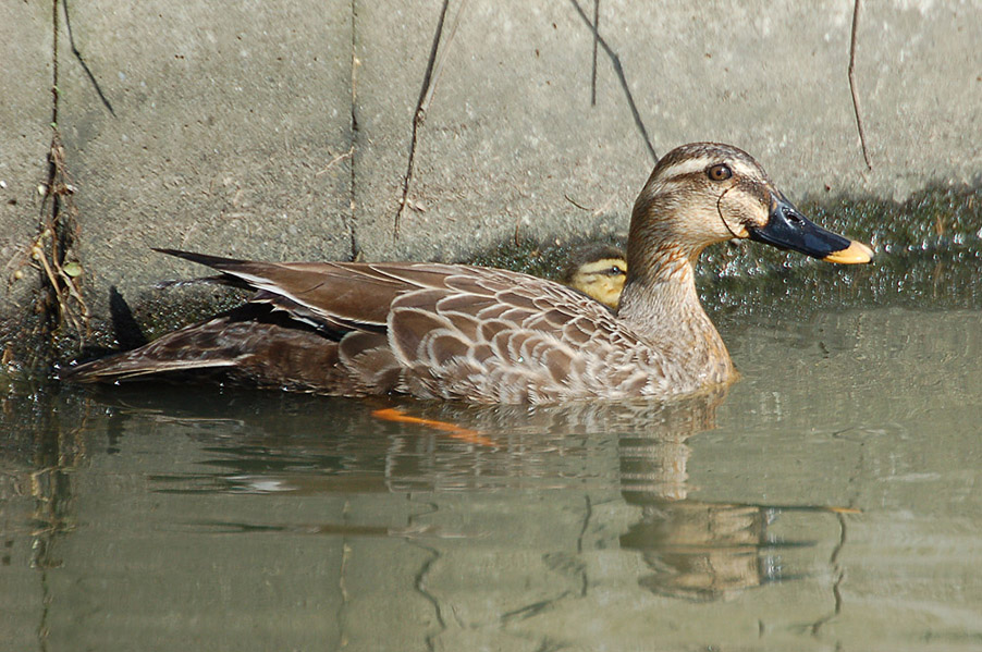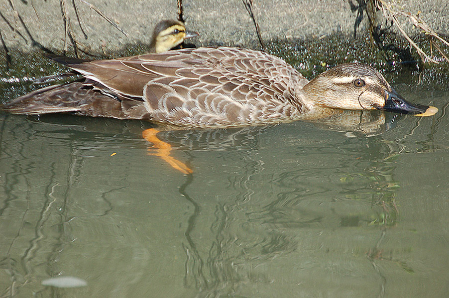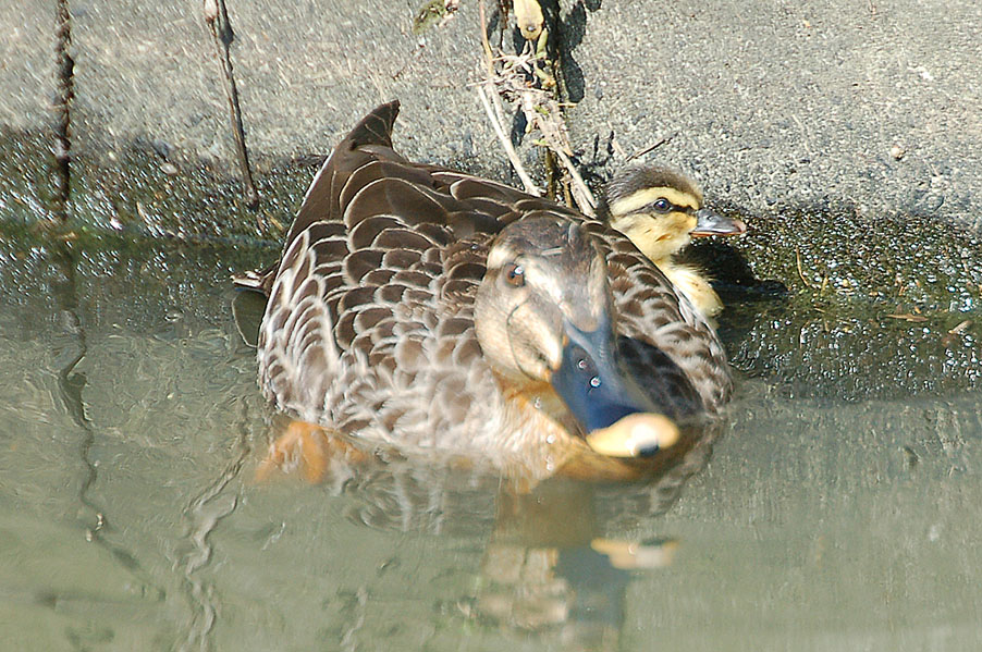 習 性 :全国的に繁殖し留鳥。湖沼、池。川、海岸等にすむ。本州中部以南で、夏場見られるカモは殆ど本種である。