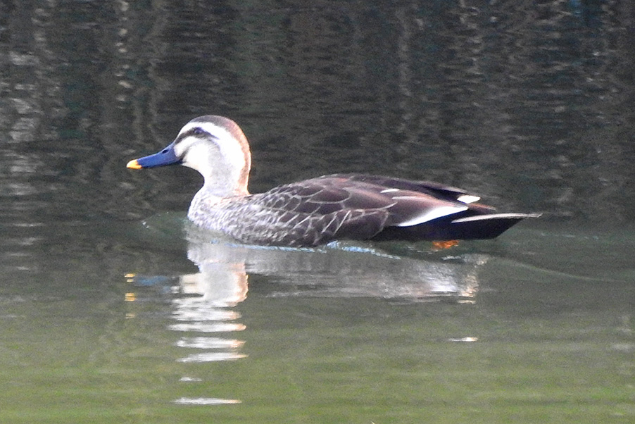類 似 種:他のカモ類の雄は特徴があるが雌はカルガモに似ている。マガモの雌は嘴が黒くて周囲が橙色、青色の翼鏡の上下に2本の白線があ