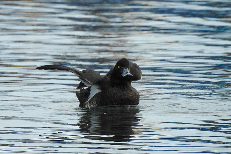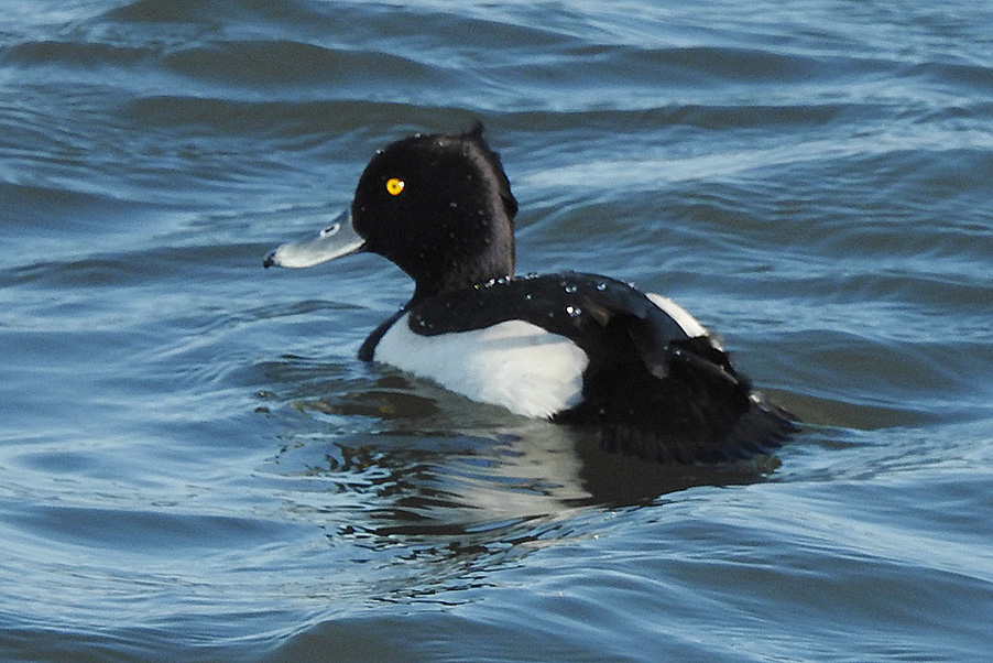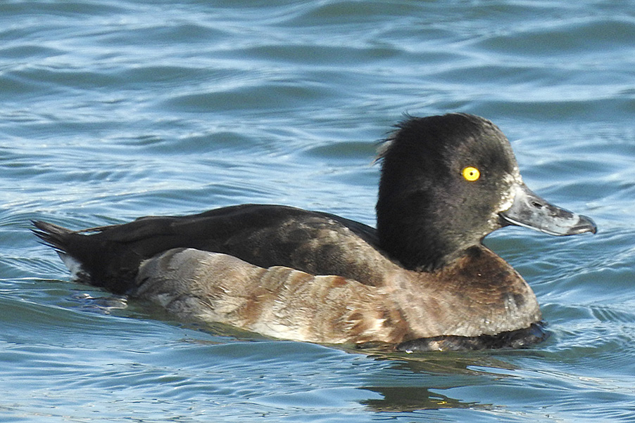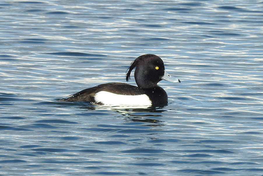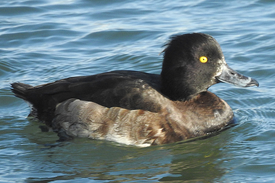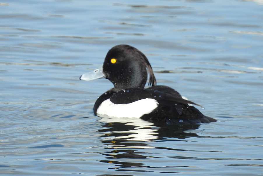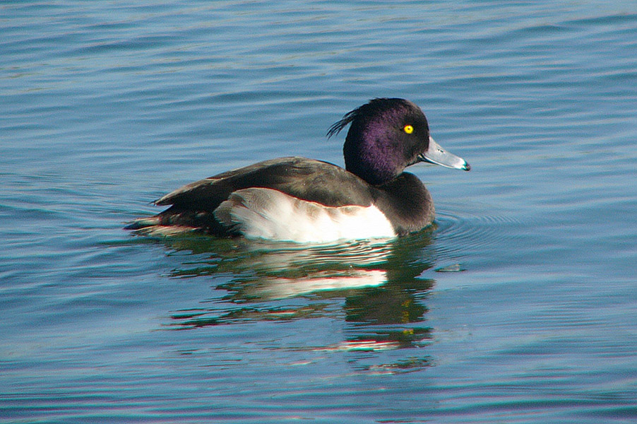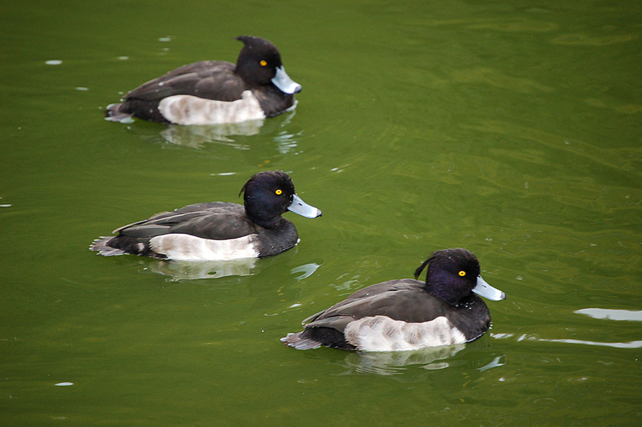 類 似 種:スズガモの雄は頭に緑色光沢があり、冠羽はない。背は灰色。スズガモの雌は少し大きくて嘴は長く、冠羽はない。嘴の根元が幅広