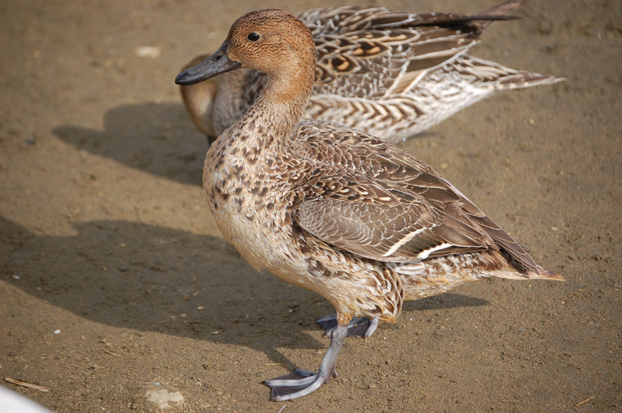 く、尾は長くない。マガモやハシビロガモの雌は嘴の色、足の色が違う。