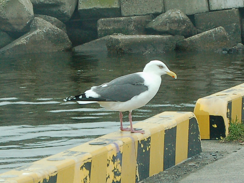 特 徴 :L60cm W135cm オオセグロカモメに似ているが、背や翼の上面は青灰色で、翼の先は黒くて白斑がある。翼の下面は先端だ